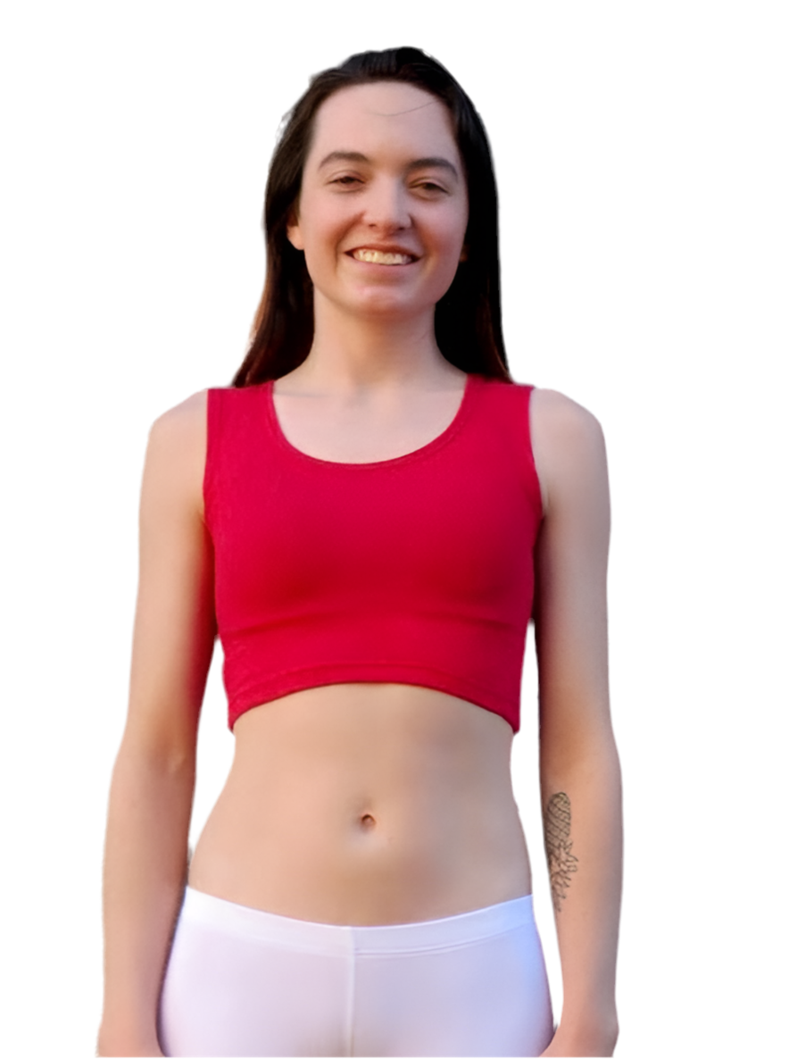 This form-fitting red crop top / cropped tank top is made from a stretchy cotton spandex fabric.